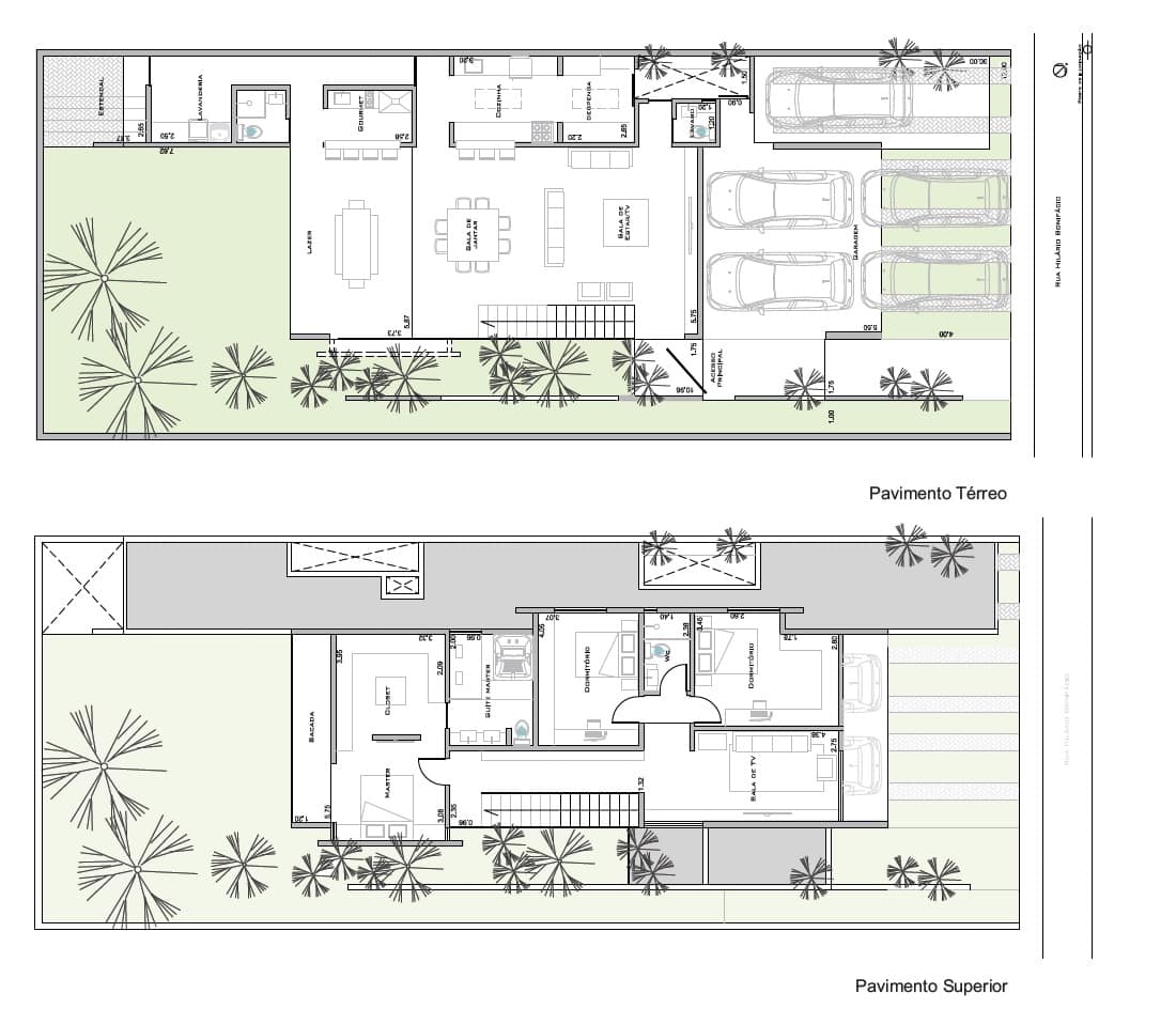 O projeto se estabelece a partir de dois elementos laterais que estruturam toda sua organização. Do lado esquerdo, um grande jardim de inverno e, no direito, os espaços de serviços. As áreas servidas sociais e privativas estão no vazio central do térreo e do nível superior, respectivamente.